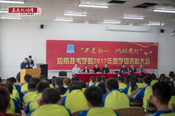 李雁冰书记在讲话中对受表彰的师生表示祝贺,对多年来学院克服“学生多、教师少、困难大、任务重”等不利条件,坚持不懈抓好学团工作给予了充分肯定。他告诫广大学子要“学得明白、过得愉快、活得精彩”,要重视专业学习,努力培养和锻炼实践技能,做祖国需要的应用型、技能型“大国工匠”。