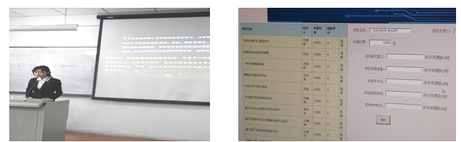 本次项目申报工作得到了学院领导的高度重视,成立了院级领导小组,同时成立了院级专家组对“大创”项目的进行评审工作。为了提高大学生的创新能力,在项目开展前期学院鼓励学生积极参与申报,调动教师和学生的广泛参与。项目答辩过程中,同学们仪表端庄,思路清晰地阐述自己项目的创新点和特色,举手投足尽显当代大学生的风采。学院为了体现项目评审的公平性,由朱兴宇老师研发的“太阳成集团tyc33455大学生创新创业项目立项答辩专家评分系统”投入使用,使整个评审过程更加科学严谨。
