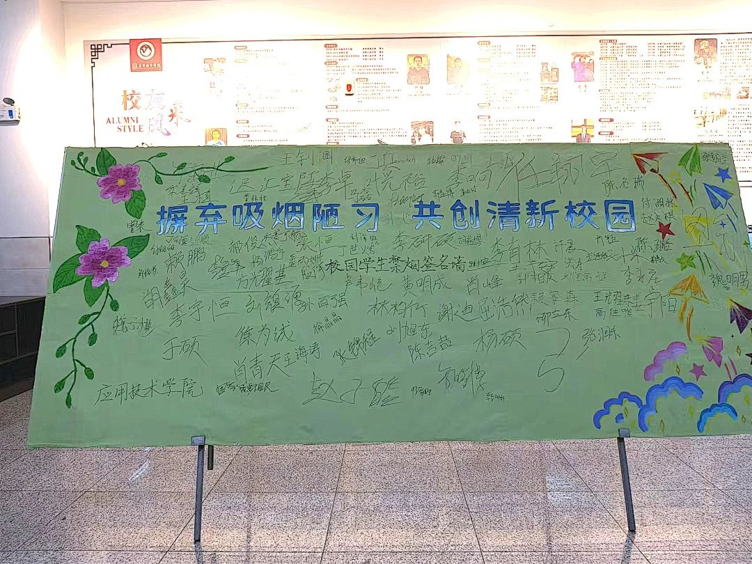 近日,学院在一楼大厅精心设置了“摒弃吸烟陋习,共创清新校园”的禁烟签名墙,旨在大力呼吁同学们积极投身到禁烟行动中来,共同努力打造清新的校园环境。无论是积极参与学校组织的各类禁烟宣传活动,还是在日常生活中自觉主动地避免接触烟草制品,我们都应当用实际行动来表明:“无烟校园”并非是遥不可及的梦想,而是我们大家齐心协力共同追求的目标。
