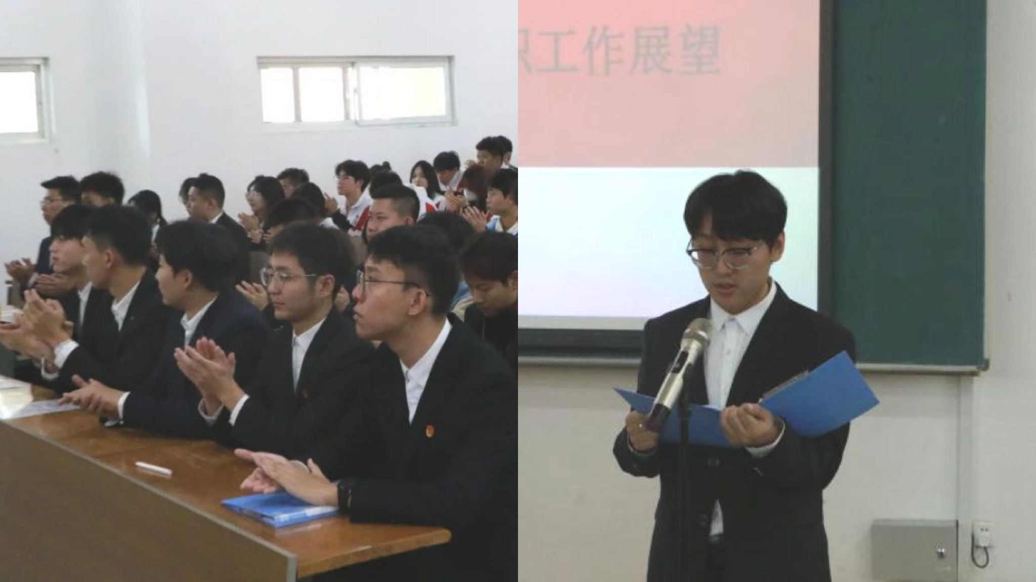 第十一届团学组织代表郝俊杰做工作展望,他表达了对未来工作的信心和决心,承诺将以饱满的热情和高度的责任感,充分发挥学院与同学之间的桥梁和纽带的作用,认真及时地完成各项工作,制定并不断完善各项规章制度。也要定期进行批评与自我批评,有错必纠,有错必改。吸取经验教训,清醒地看到当下面临的困难和问题,接纳同学、老师提出的正确意见和建议,补短板强弱项,走好学院发展之路。