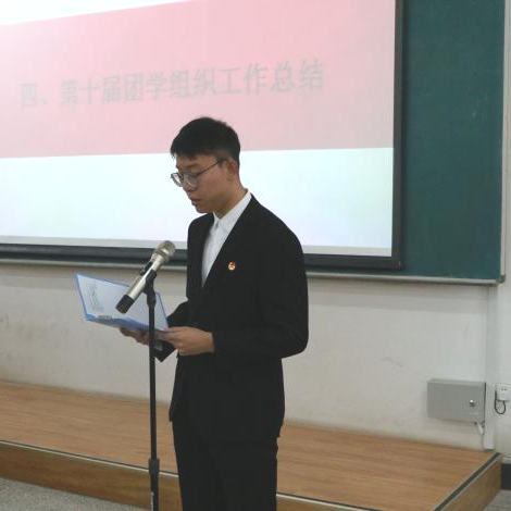 第十届团学组织代表赖鹏对第十届团学组织工作进行总结和汇报,他对上一届承办的活动进行了回顾,总结了优点和不足,对上一年老师、负责人和所有部员们的辛勤付出和无私奉献表示感谢,同时对新一届成员寄予希望,希望他们能赓续优良传统,进一步完善工作内容,秉承为同学服务的宗旨,为我院各项工作做出卓越贡献。正如习近平总书记所说:“青年一代有理想、有本领、有担当,国家就有前途,民族就有希望。”