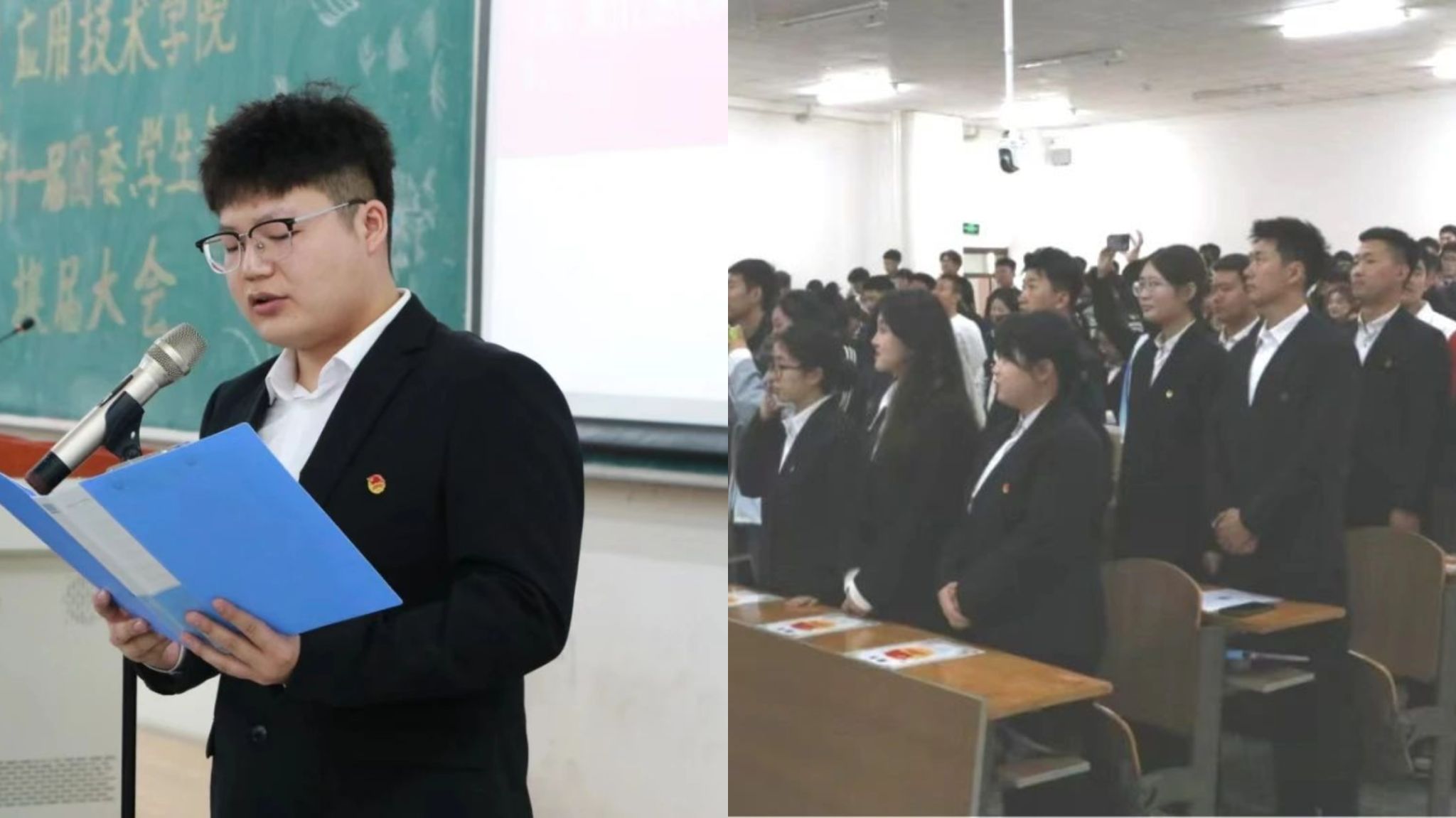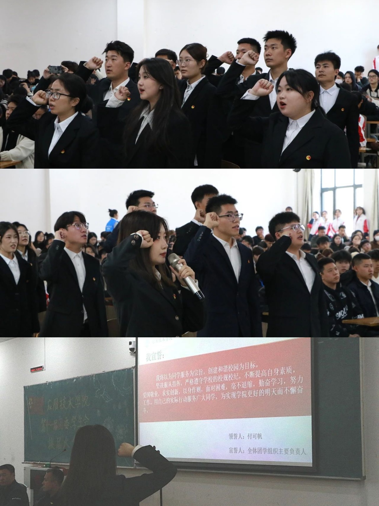 在第十一届太阳成集团tyc33455学生团委学生副书记付可帆的带领下,全体学生负责人起立并齐声宣誓。