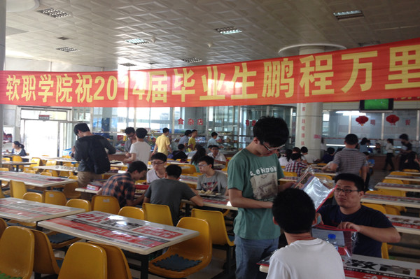 六月是收获的季节,也是学业有成的工大软职学子离别学校的日子。6月21日,软件职业技术学院在林园校区食堂热烈欢送2014届毕业生,对来领取毕业证的学生准备一份热腾腾的“上车饺子”。话离别、忆往昔,浓浓师生意、依依惜别情。