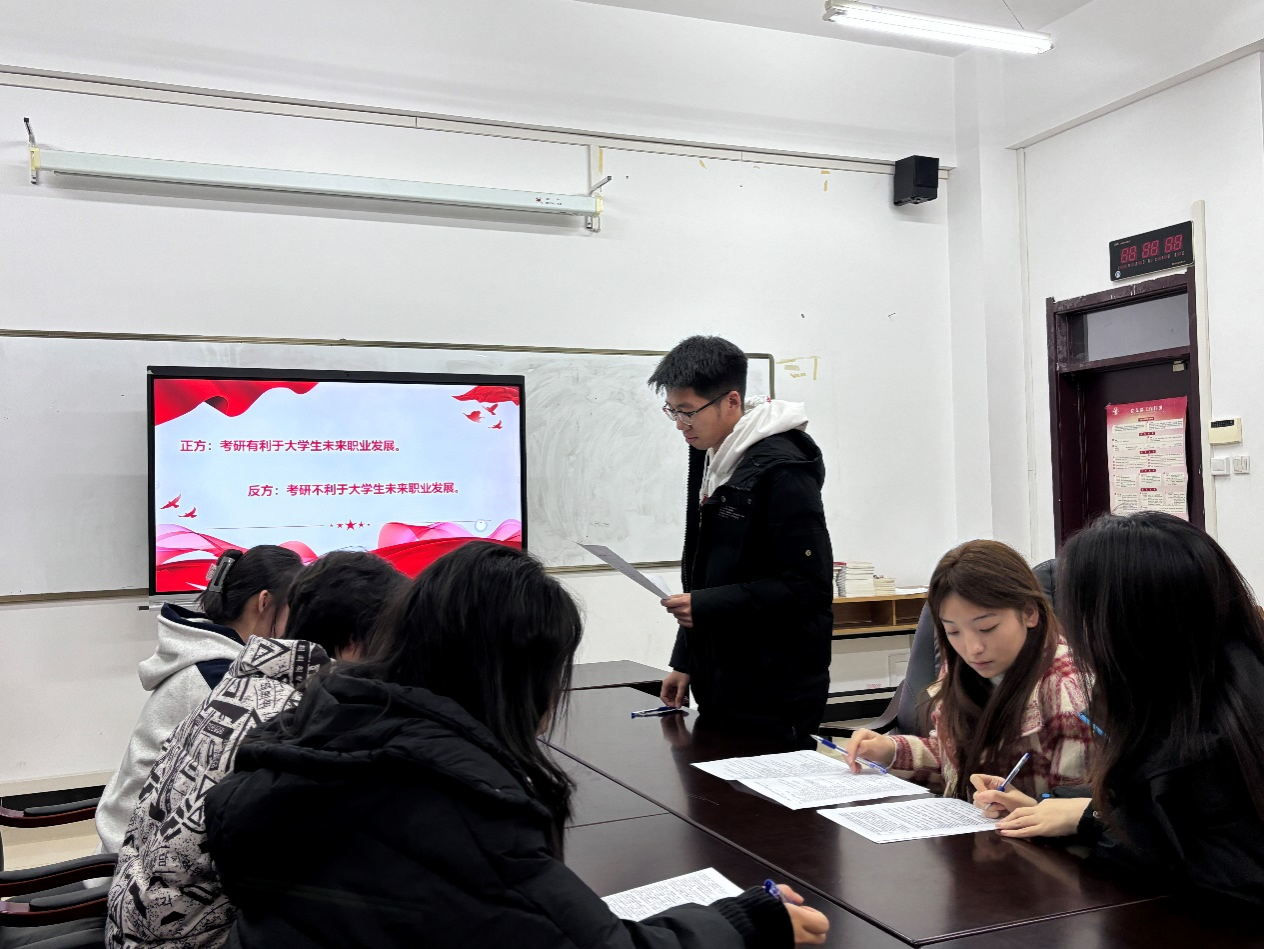 同学们踊跃组队,热情高涨。参赛队伍来自不同班级、不同专业,各有千秋。有的以思维敏捷、逻辑严谨见长;有的凭口才出众、表达感染力强独树一帜;有的靠团队默契、协作无间令人赞叹。赛前,各队精心筹备,广搜资料,模拟演练,雕琢论点论据,力求赛场之上尽展锋芒,绽放华彩。