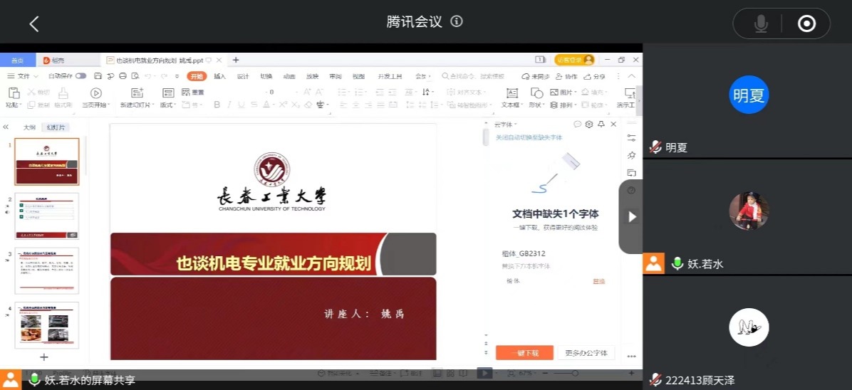 讲座开始,宋涛老师详细介绍了计算机专业就业方向、专业技能要求、毕业生就业现状、未来发展趋势四个方面的内容;姚禹老师针对机电行业的现状与发展前景、人才培养规划、人才培养结果三个方面的内容进行了阐述。两位老师为大家带来了干货满满的就业创业知识,从多个方面对同学们进行了指导,在场同学纷纷表示受益匪浅。