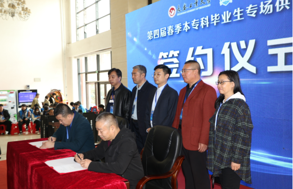 洽谈会现场,学院党委副书记谷阔代表学院与数据加长春科技有限公司、凯世曼铸造长春有限公司、吉林建龙钢铁有限责任公司3家用人单位签订了人才战略合作框架协议。