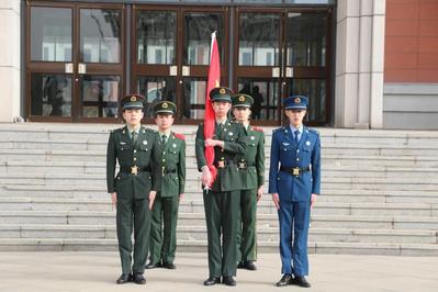 担任本次升旗仪式的升旗手来自31918班的张恩铭,中共党员,15年入伍,20年退伍入学,服役期间荣获各种奖项;本次的护旗手来自经学院层层选拔、严格训练的戎光连。出席此次升旗仪式的有学院党委副书记谷阔、团委书记孔若冰、学生第一党支部书记尹政以及各位辅导员老师和20级的同学们。