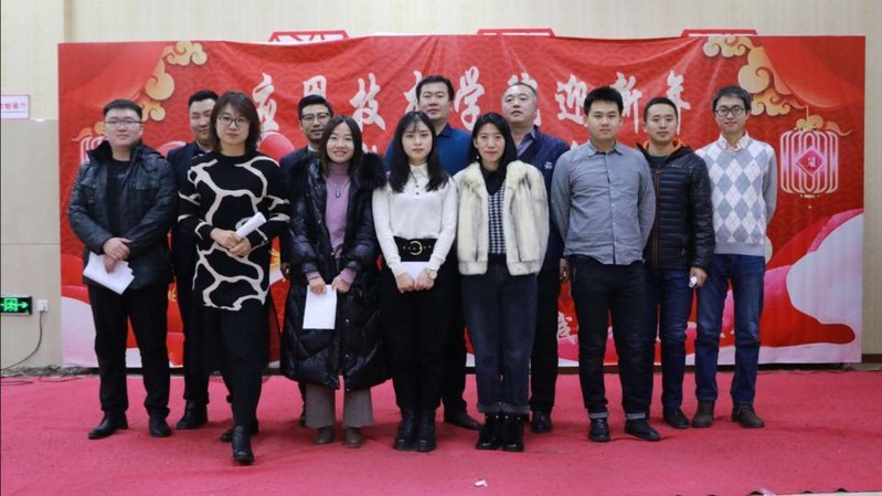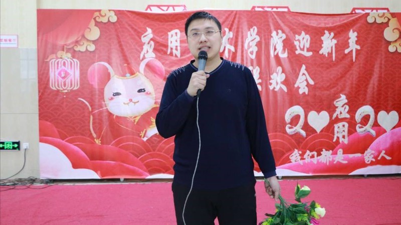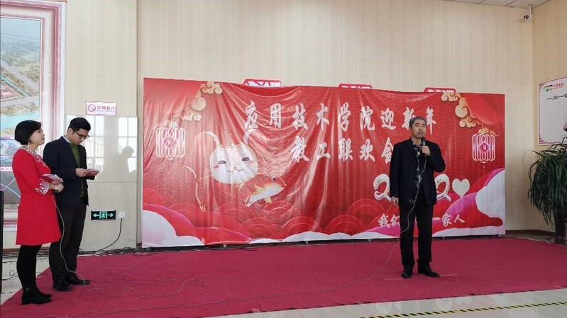 院长王立君致辞,2019年在学院党政班子的团结协作与带领下,各项工作取得了可喜的成绩:科研经费突破了110万元,学生获得各级各类大赛奖项再创新高、就业工作荣获校突出贡献奖。王立君院长向全体教职工一年来的辛勤付出表示衷心地感谢,并祝福全院师生在新的一年家庭幸福,万事顺意!