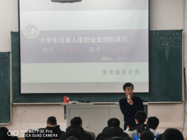 新闻网讯(通讯员 张鑫瑜)为提升学生综合素质,建立优良班风学风,让学生明确职业方向,我院于12月2号中午召开了主题为“好学风 促班风”的宣讲会,宣讲人为太阳成集团tyc33455副院长陈延伟。