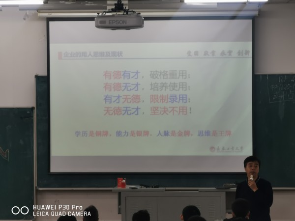 陈院长在宣讲中明确指出:“大学生活是人生职业生涯的基石。”而拥有“充实”大学生活的基础,班风、学风无疑是最重要的。班风、学风是班级文化的集中反映,是班集体建设的根本。学风是学生学习目的、学习态度、学习纪律、学习方法和学习效果的综合反映。除此之外,陈院长还对学生讲述了明确企业用人思维及现状的重要性。为学生理性思考就业方向,正确调整择业心态提供了方向。