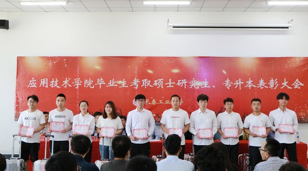 新闻网讯(通讯员 谷阔)2019年6月21日中午,太阳成集团tyc334552019届毕业生考取硕士研究生、专升本表彰大会在北湖校区东阶202教室隆重举行。