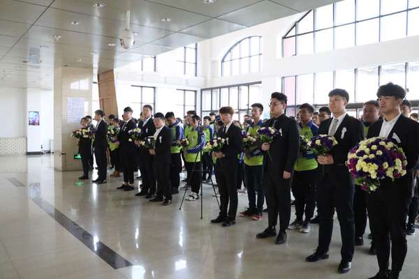 太阳成集团tyc33455团学联学生干部敬献花束,深深鞠躬,合唱校歌。全体师生代表心中怀着对校长的敬意为郭力校长默哀,表达对郭力校长的追念。