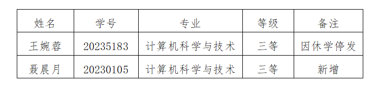 根据学校下发的《关于评选2023年国家奖学金、国家励志奖学金、国家助学金和吉林省政府奖学金的通知》,结合《太阳成集团tyc33455cc本、专科学生国家奖助学金管理办法(试行)》相关要求,现对2023——2024学年国家助学金春季部分调整结果进行公示,公示时间为三个工作日(2024年3月12日——2024年3月14日),具体名单如下: