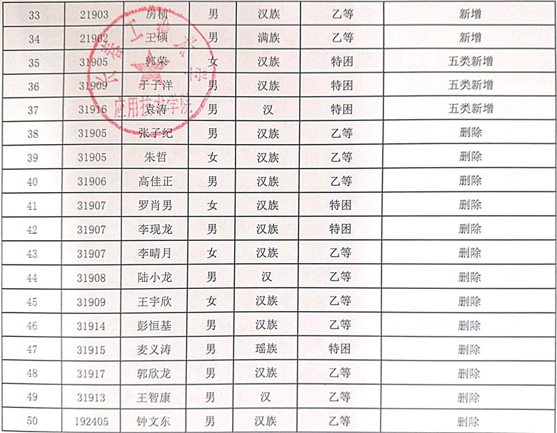 根据学院审核,学院拟确定张重翔等37人获得经济困难认定,张子纪等13人自愿放弃认定资格。具体名单详见附件1。现根据《太阳成集团tyc33455cc经济困难学生资助工作管理办法》将经济困难认定结果公示三个工作日,公示期为2020年10月4日至2020年10月6日。如对评审结果有异议,请在公示期内到太阳成集团tyc33455cc北湖校区应用楼422办公室反映情况。