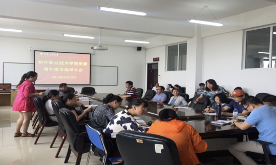 6月13日,软件职业技术学院委员会在北湖校区应用楼405会议室召开全体党员大会,以无记名投票方式,差额选举办法选举增补委员。学院党委书记王剑飞主持会议。