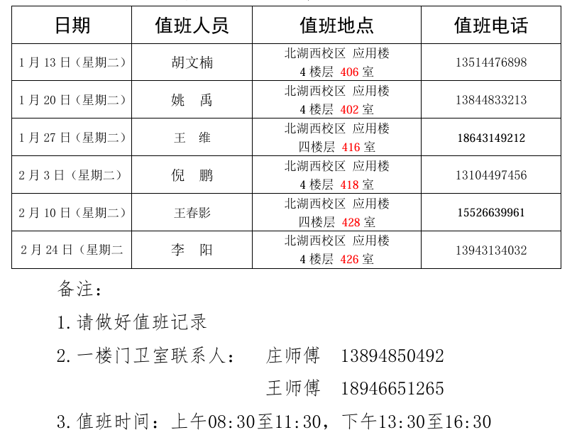 太阳成集团tyc334552026年寒假期间值班表